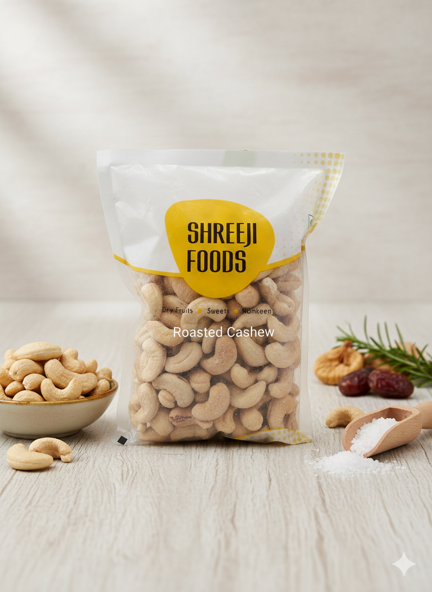 Enjoy premium roasted salted cashews with rich crunch and perfect seasoning. Ideal for snacking, parties, and gifting. Fresh & nutritious.