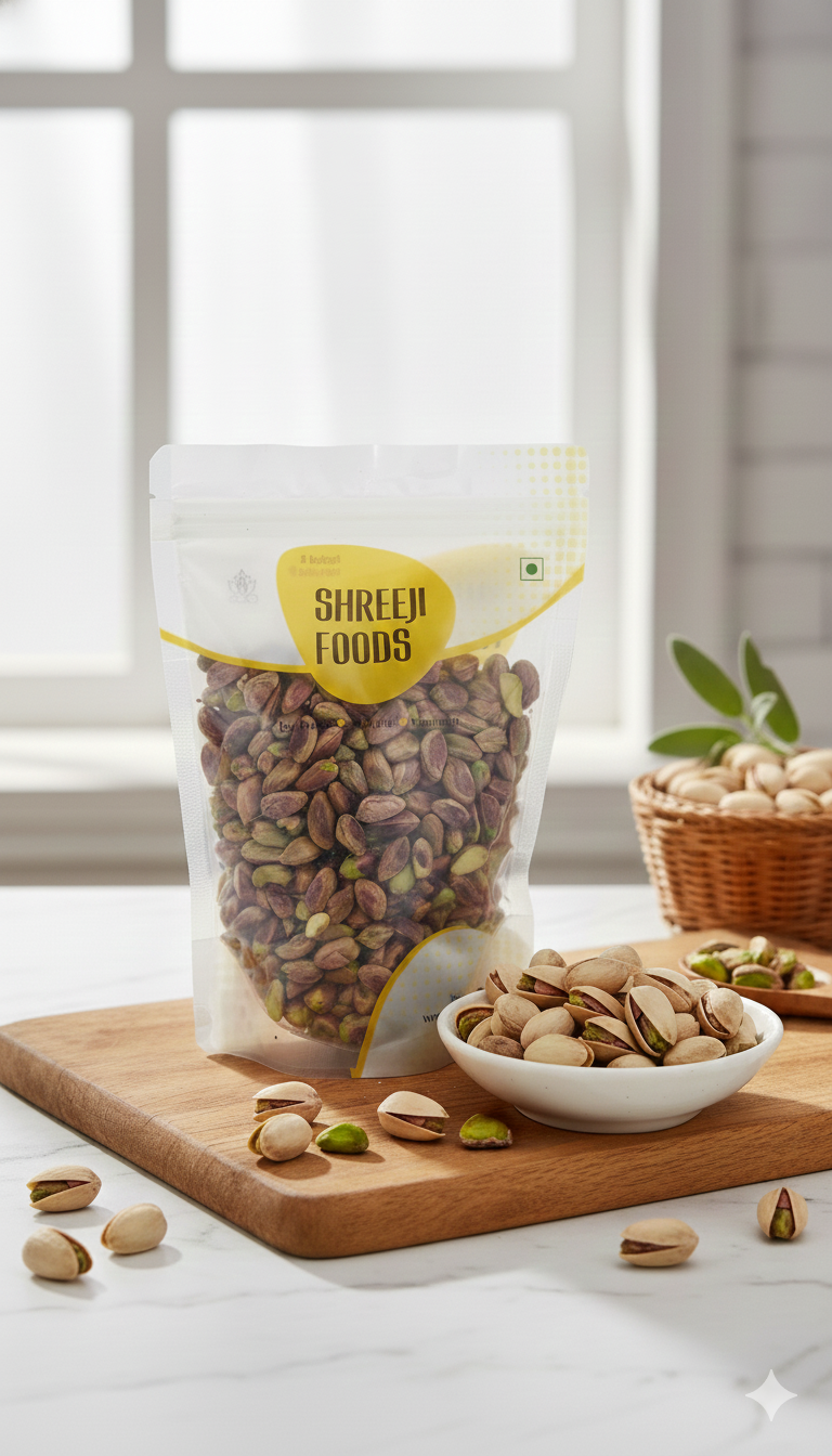 Packed with protein, fiber, healthy fats, and antioxidants, Green Pista (Big) is a nutritious choice for daily snacking, baking, and gourmet cooking. Its large size makes it ideal for garnishing sweets, desserts, and festive dishes.