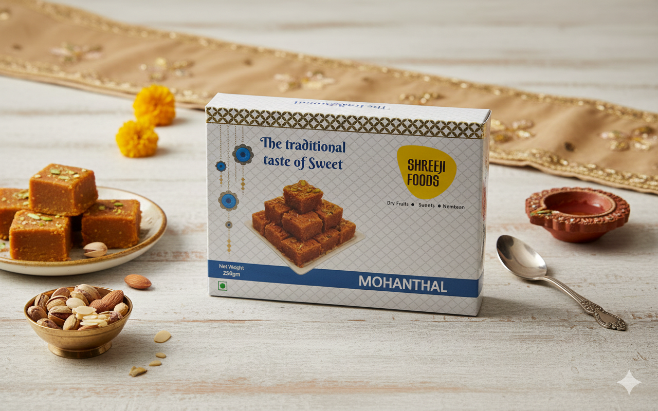 Desi Ghee Mohanthal is a traditional Indian sweet crafted with pure desi ghee, offering a rich and authentic flavor. Made from finely ground gram flour and infused with aromatic spices, this delicacy delivers a perfect balance of sweetness and texture. Ideal for festive occasions and celebrations, it provides a wholesome taste experience rooted in heritage, while the use of desi ghee enhances its aroma and nutritional value. Enjoy a classic treat that reflects expert craftsmanship and timeless quality.