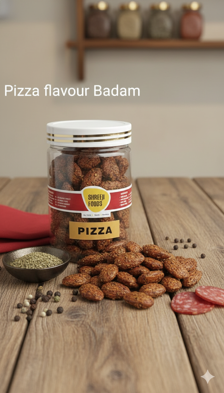 Pizza Badam is a delicious and crunchy almond snack coated with zesty pizza seasoning. Combining the nutritional goodness of almonds with the bold flavors of pizza, this snack is perfect for health-conscious food lovers who don’t want to compromise on taste. Ideal for munching at home, parties, or on-the-go snacking, Pizza Badam delivers both flavor and energy in every bite.