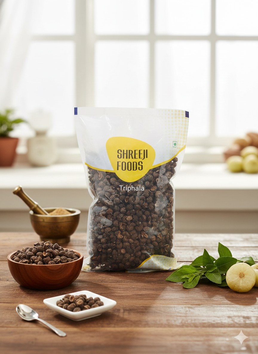 Triphala is a traditional Ayurvedic herbal blend that supports digestion, detoxification, and gut health. 100% natural and organic formula.