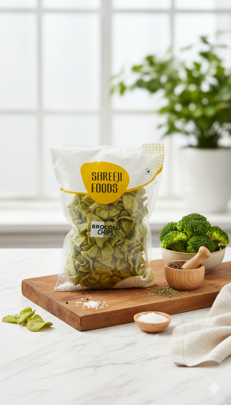 Roasted Broccoli Chips are a crunchy, nutrient-rich snack made from fresh broccoli, gently roasted to preserve flavor and vitamins. Lightly seasoned for natural taste, these chips are perfect for health-conscious snacking. Enjoy them as a tea-time treat, a party snack, or a wholesome anytime munch.