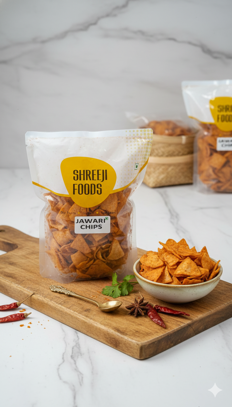 Roasted Jawari Chips are a crunchy and nutritious snack made from premium jawari (sorghum) grains, lightly roasted to retain natural flavor and nutrients. Low in oil and packed with fiber, these chips are perfect for tea-time, travel, or anytime healthy snacking. Enjoy a wholesome, tasty alternative to regular fried snacks.