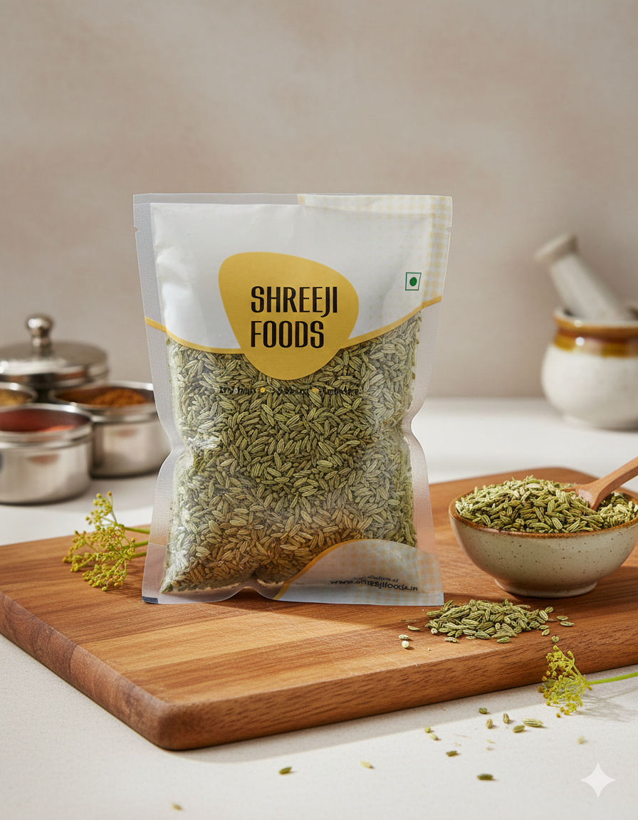 Plain Badi Saunf, also known as Big Fennel Seeds, is a naturally sweet and aromatic spice widely used in Indian households. These premium-quality fennel seeds are larger, richer in essential oils, and more flavorful compared to regular saunf. Badi Saunf is commonly used in cooking, tea blends, herbal remedies, and traditional mouth fresheners.