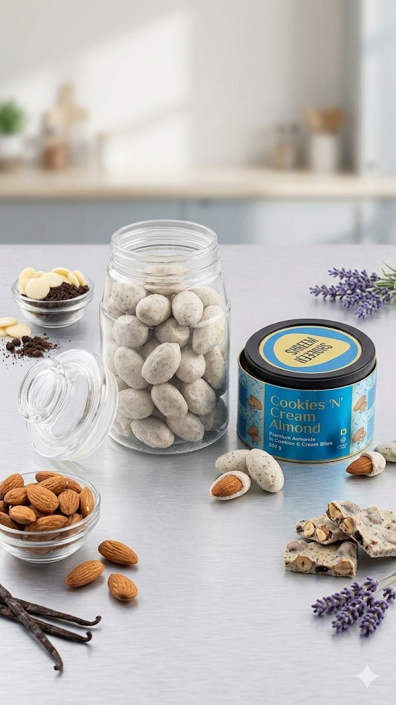 Indulge in the delightful taste of cookies & cream almonds, where crunchy premium almonds are coated in a rich and creamy cookies & cream layer. This irresistible combination delivers a perfect balance of nutty crunch and sweet dessert flavor in every bite. Ideal for snacking, gifting, or adding a gourmet touch to your day, these almonds are crafted for those who love indulgent yet satisfying treats. Whether enjoyed alone or shared, cookies & cream almonds are a must-have for every snack lover.