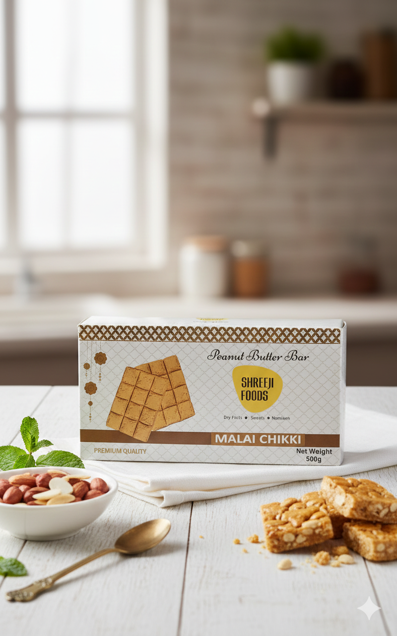 Premium Malai Chikki is a luxurious twist on the classic Indian chikki, combining the smooth richness of pure malai with perfectly roasted nuts to create a melt-in-the-mouth experience. Prepared using traditional methods, each piece delivers creamy flavor, balanced sweetness, and satisfying crunch. Ideal for festive gifting, celebrations, or everyday indulgence.